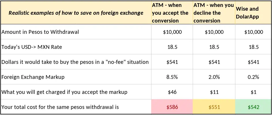Rule #2 - Always decline the conversion rate if asked. Santander, HSBC, and Banorte ATMs will ask you two questions when you do a withdrawal: (1) do you accept the flat fee - yes, and (2) do you accept the foreign exchange currency conversion - NO! They will take an 8.5% markup. You can decline the conversion and still get cash: your home bank will do that conversion for you, keeping more money in your home account while you get the same peso withdrawal. You'll know what your bank ultimately charged you when you check the amount deducted from your home bank app vs. how many pesos you withdrew.
